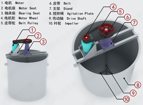 1、葉輪直徑大、轉(zhuǎn)速快,礦漿和藥物攪拌能力強(qiáng)。